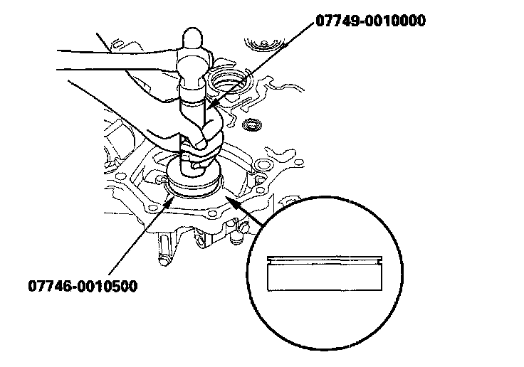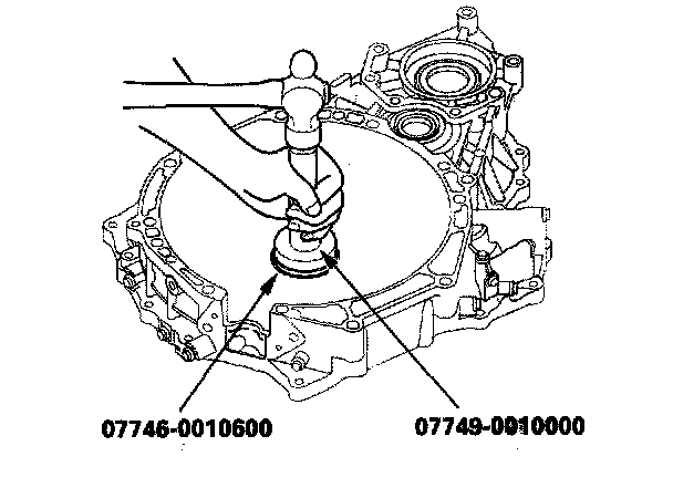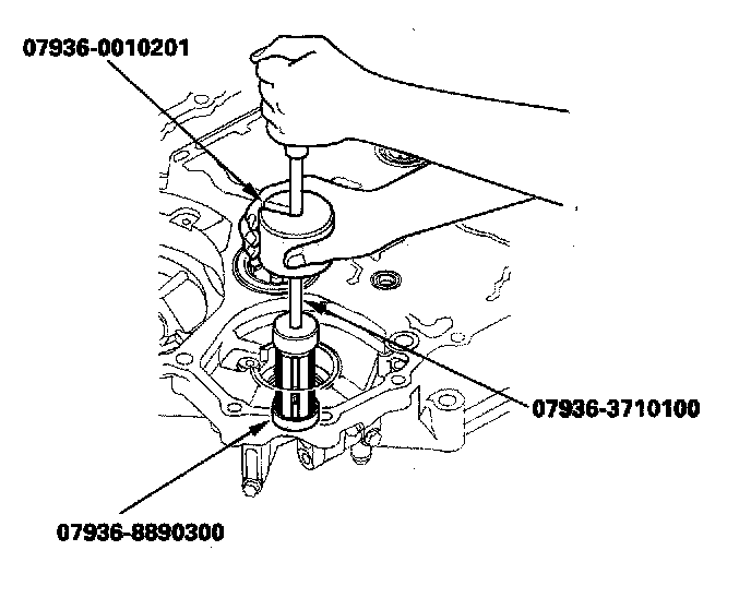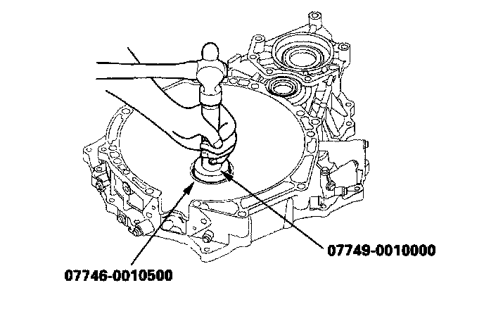 5. Install the 29 x 39 x 9.5 mm bearing into the torque converter housing with the special tools.