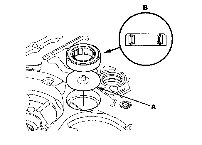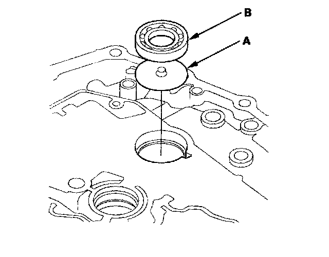 2. Install the ATF guide plate (A), then install the new bearing (B) in the housing.