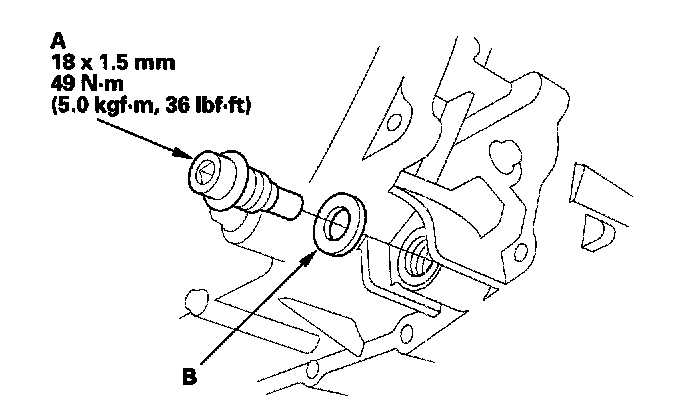 4. Reinstall the drain plug and a new sealing washer (B).