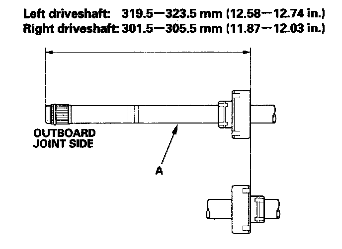 Left driveshaft: 319.5 - 323.5 mm (12.58 - 12.74 inch)