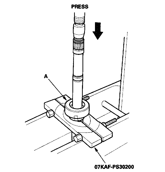 3. Remove the dynamic damper (A) using the special tool and a press as shown.