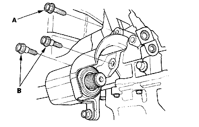 4. Remove the flange bolt (A) and two dowel bolts (B).