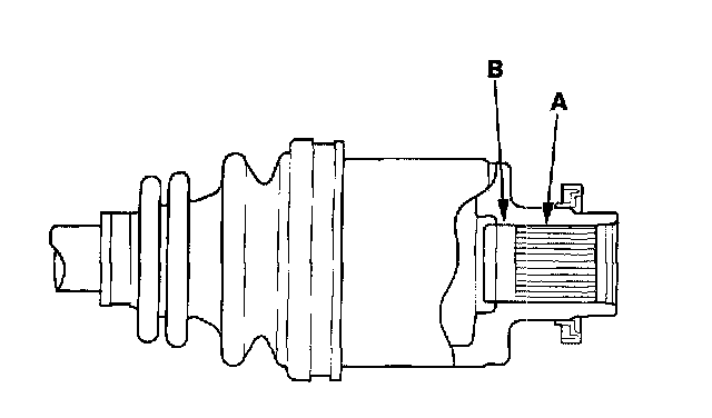 2. Install the outboard joint (A) into the rear hub (B).