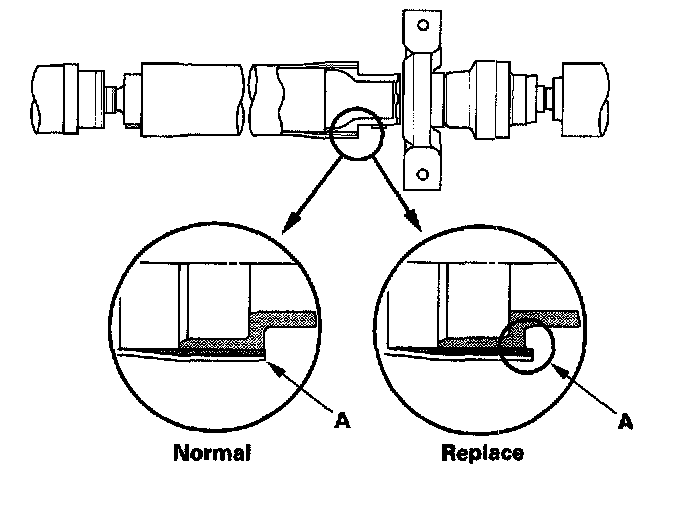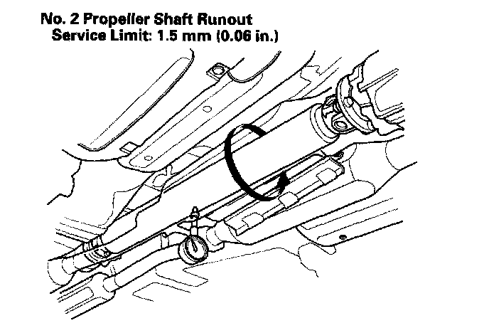 5. Check the universal joints for excessive play or rattle. If the universal joints have excessive play or rattle, replace the propeller shaft assembly.