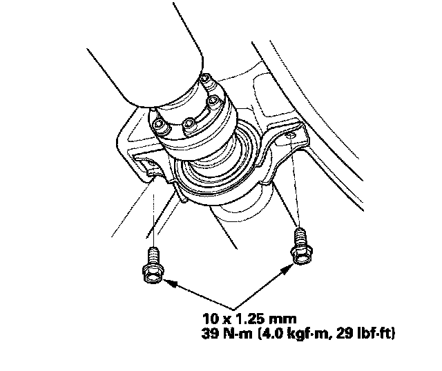 2. Install the center support bearing mounting bolts. Make sure you use new bolts.