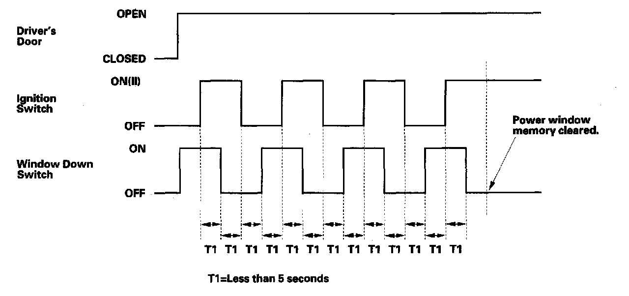 If the window still does not work in AUTO, repeat the procedure several times, paying close attention to the 5 seconds time limit between steps. If it still does not work, go to B-CAN System Diagnosis Test mode A. Troubleshooting - B-CAN System Diagnosis Test Mode A