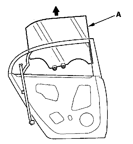 7. Carefully remove the glass (A) through the window slot. Take care not to drop the glass inside the door.