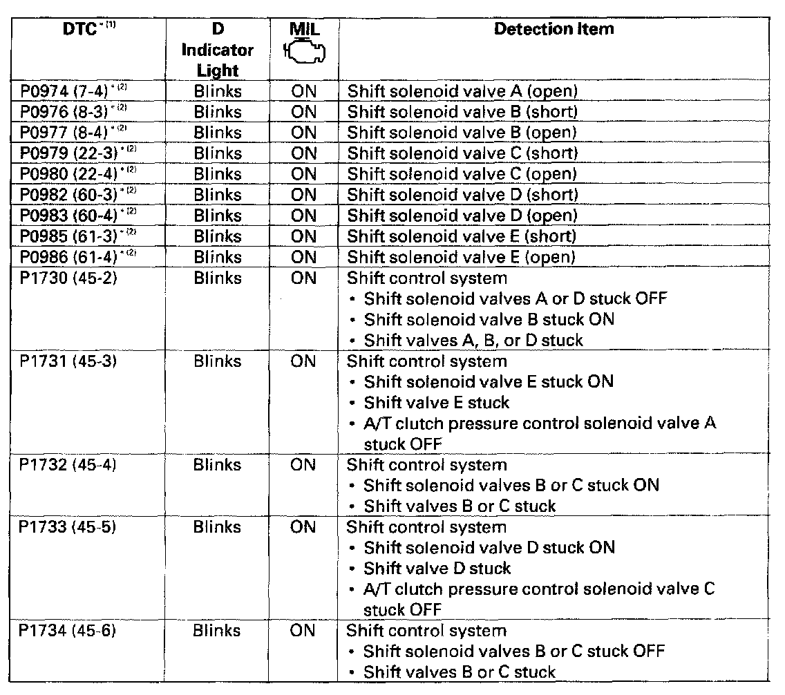* (1): The DTC in parentheses is the Honda code that you will see when you use the HDS. The first number(s) before the -(hyphen) is the flash code the D indicator indicates when the data link connector is connected to the HDS, and the tester in SCS mode.