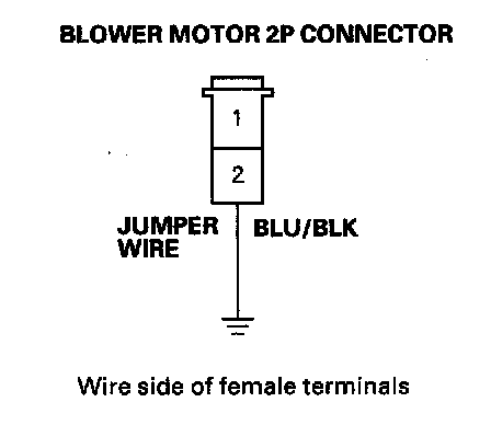 2. Connect the No. 2 terminal of the blower motor 2P connector to body ground with a jumper wire.