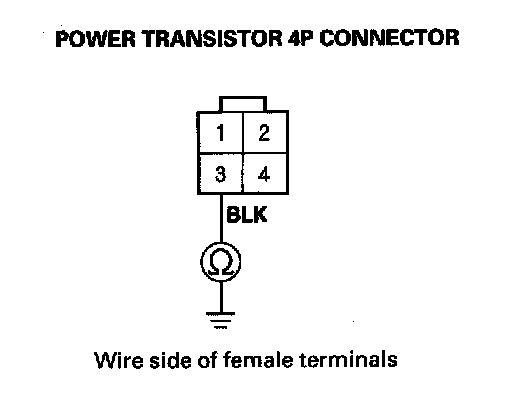 7. Check for continuity between the No. 3 terminal of the power transistor 4P connector and body ground.