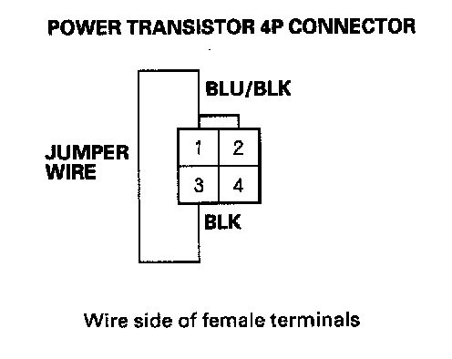 8. Connect the No. 1 and No. 3 terminals of the power transistor 4P connector with a jumper wire.