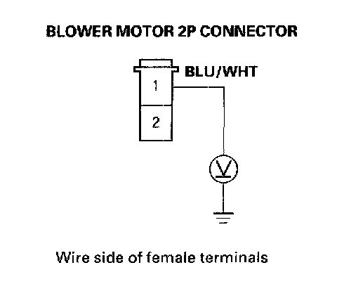 19. Measure the voltage between the No. 1 terminal of the blower motor 2P connector and body ground.