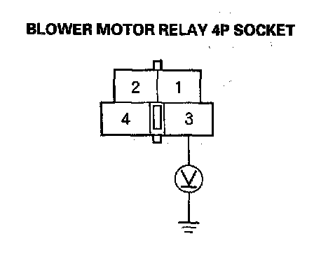24. Measure the voltage between the No. 2 terminal of the blower motor relay 4P socket and body ground.