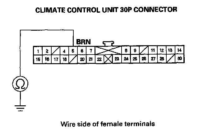 4. Check for continuity between the No. 5 terminal of the climate control unit 30P connector and body ground.