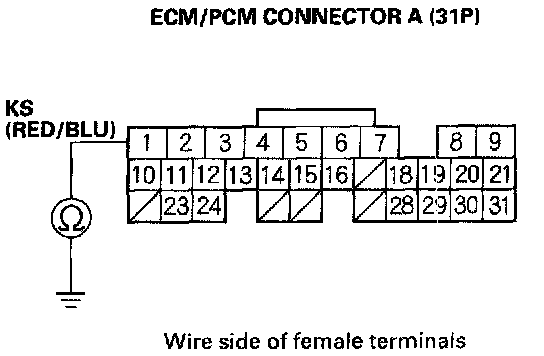 11. Connect the knock sensor 1P connector terminal to body ground with a jumper wire.