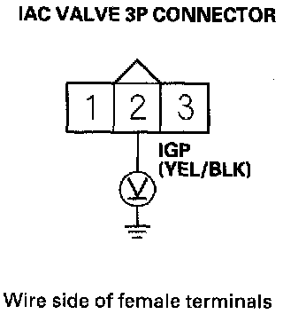 7. Measure voltage between IAC valve 3P connector terminal No.2 and body ground.