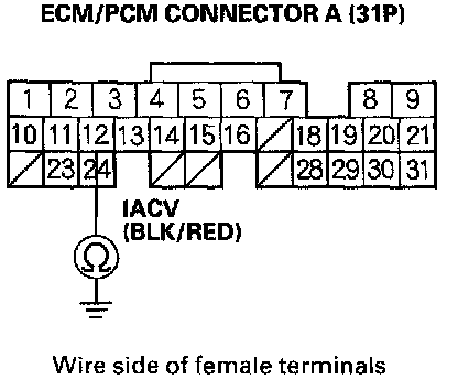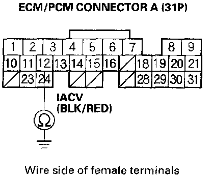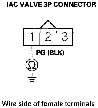 9. Check for continuity between body ground and IAC valve 3P connector terminal No.1.