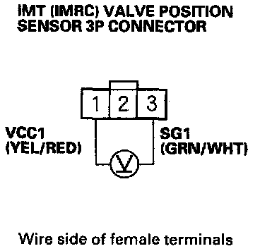 6. Measure voltage between IMT (IMRC) valve position sensor 3P connector terminals No.1 and No.3.