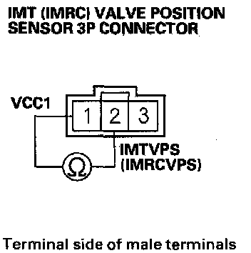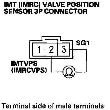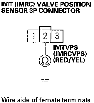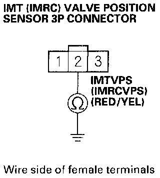 8. At the sensor side, measure resistance between IMT (IMRC) valve position sensor 3P connector terminals No.2 and No.3.