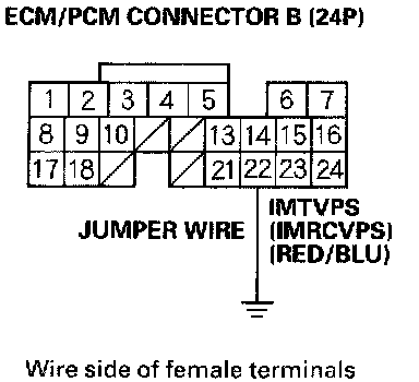 12. Connect ECM/PCM connector terminal B22 to body ground with a jumper wire.