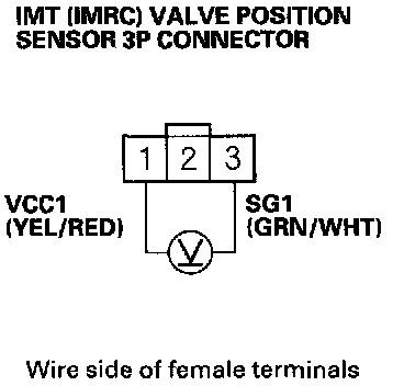 6. At the wire harness side, measure voltage between IMT (IMRC) valve position sensor 3P connector terminals No.1 and No.3.
