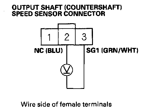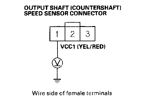 20. Measure the voltage between output shaft (countershaft) speed sensor connector terminals No.2 and No. 3.