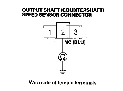 15. Check for continuity between output shaft (countershaft) speed sensor connector terminal No. 2 and body ground.