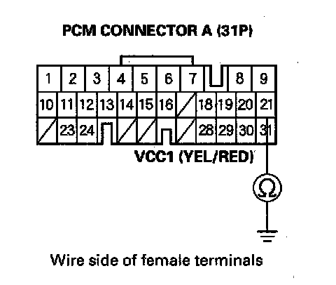 NO: Check for loose or poor connections at PCM connector terminal A21. If the connection is OK, update the PCM if it does not have the latest software, or substitute a known-good PCM, then recheck. If the symptom/indication goes away with a known-good PCM, replace the original PCM.