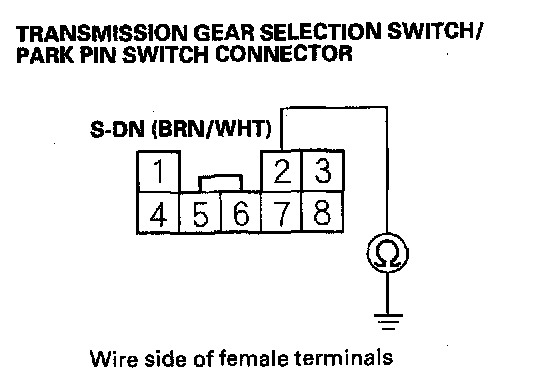 11. Check for continuity between transmission gear selection switch connector terminal No. 2 and body ground.