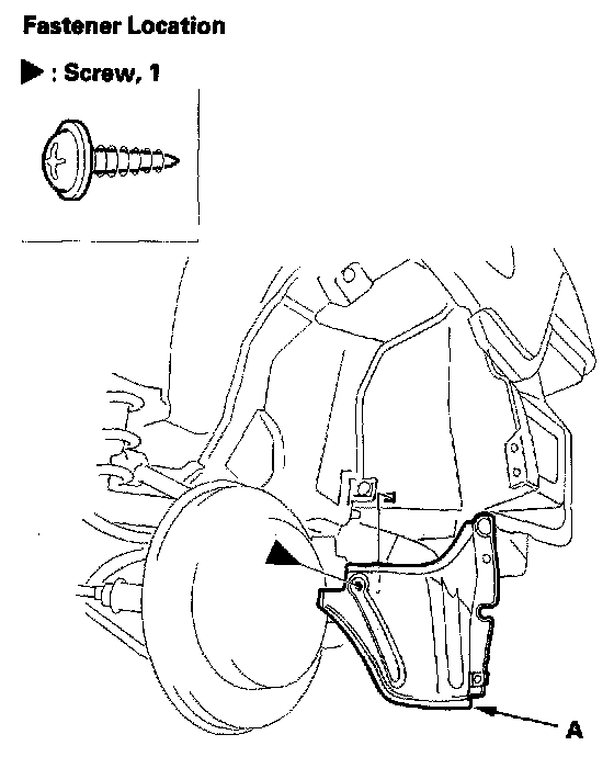 2. Remove the screw, then remove the rear inner fender (A). Take care not to scratch the body.