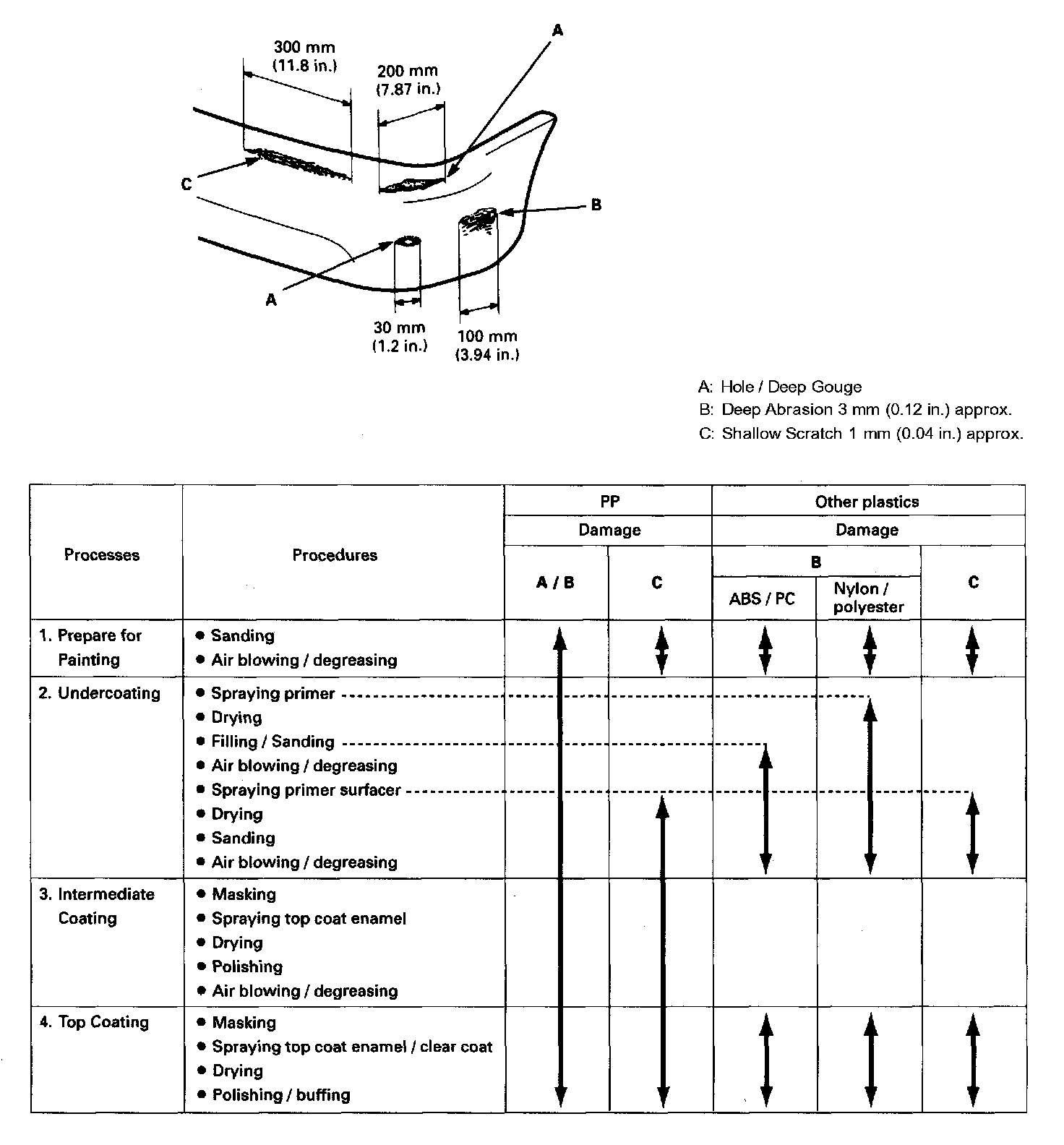 The illustration shows refinishing methods to various types of