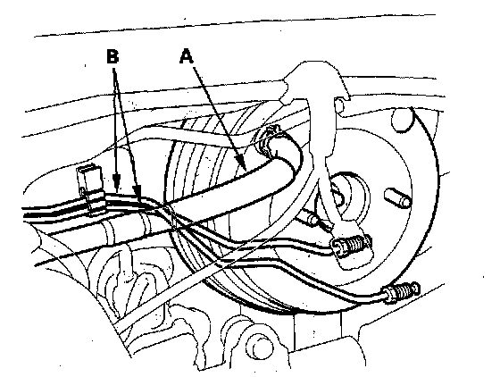 3. Remove the master cylinder brake lines (B) from the brake line holder.