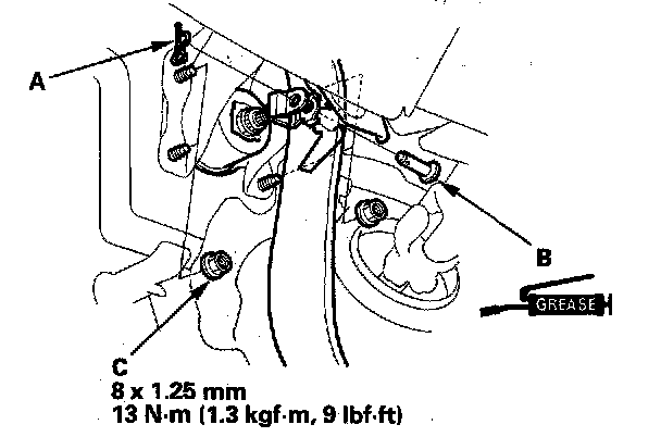 5. Remove the brake booster mounting flange nuts (C).
