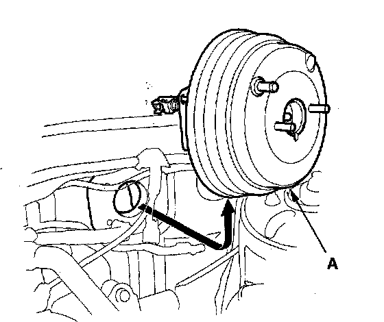 6. Remove the brake booster (A) from the engine compartment.