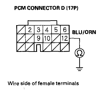 5. Check for continuity between PCM connector terminal D12 and body ground.