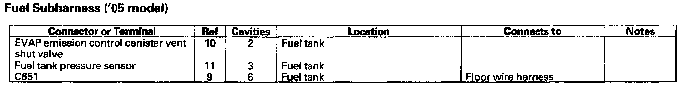 Fuel Subharness ('05 Model):