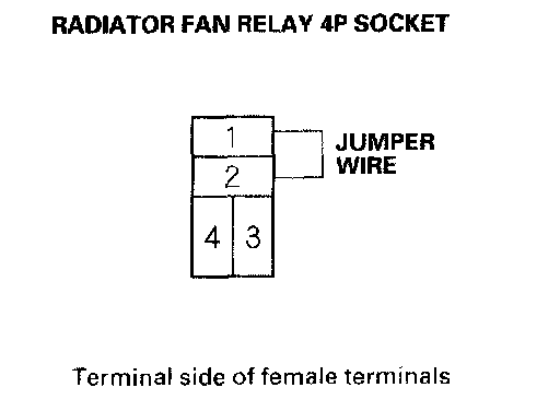 4. Connect the No. 1 and No. 2 terminals of the radiator fan relay 4P socket with a jumper wire.