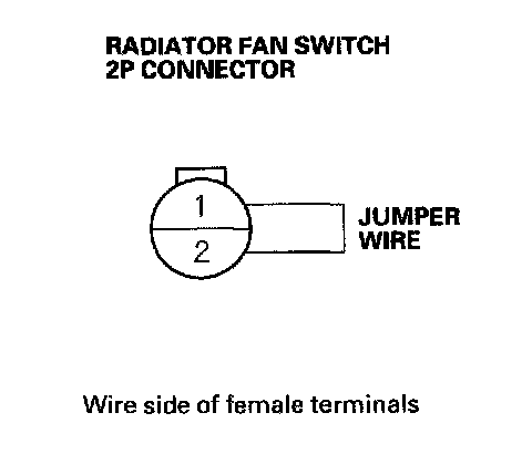 11. Connect the No. 1 and No. 2 terminals of the radiator fan switch 2P connector with a jumper wire.