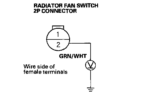 12. Remove the jumper wire, and measure the voltage between the No. 2 terminal of the radiator fan switch connector and body ground.