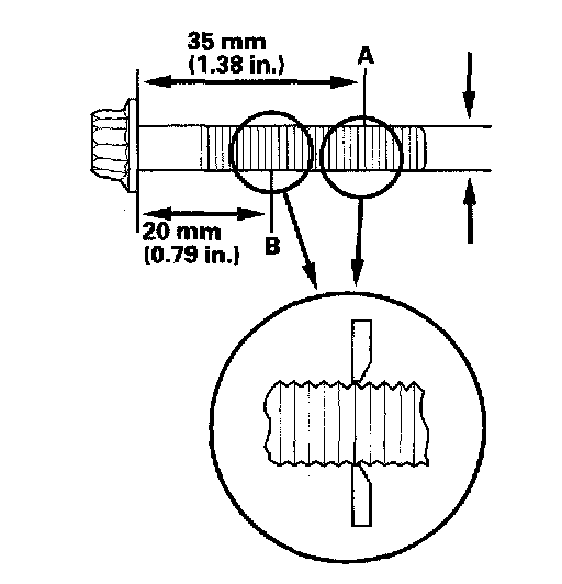 Connecting Rod Bolt Inspection1. Measure the diameter of each connecting rod bolt at point A and point B.