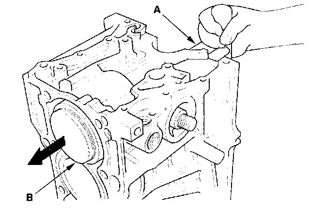 15. Use the wooden handle of a hammer (A) to drive out the pistons (B).
