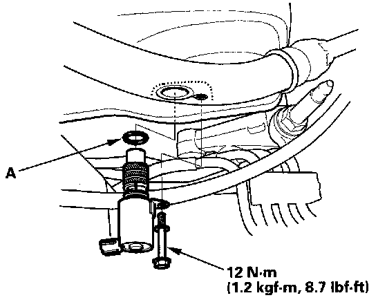8. Coat a new O-ring (A) with engine oil, then install it.