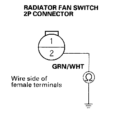 Radiator Fan Switch Circuit Troubleshooting (Short)1. Remove the radiator fan relay from the under-hood fuse/relay box, and test it.