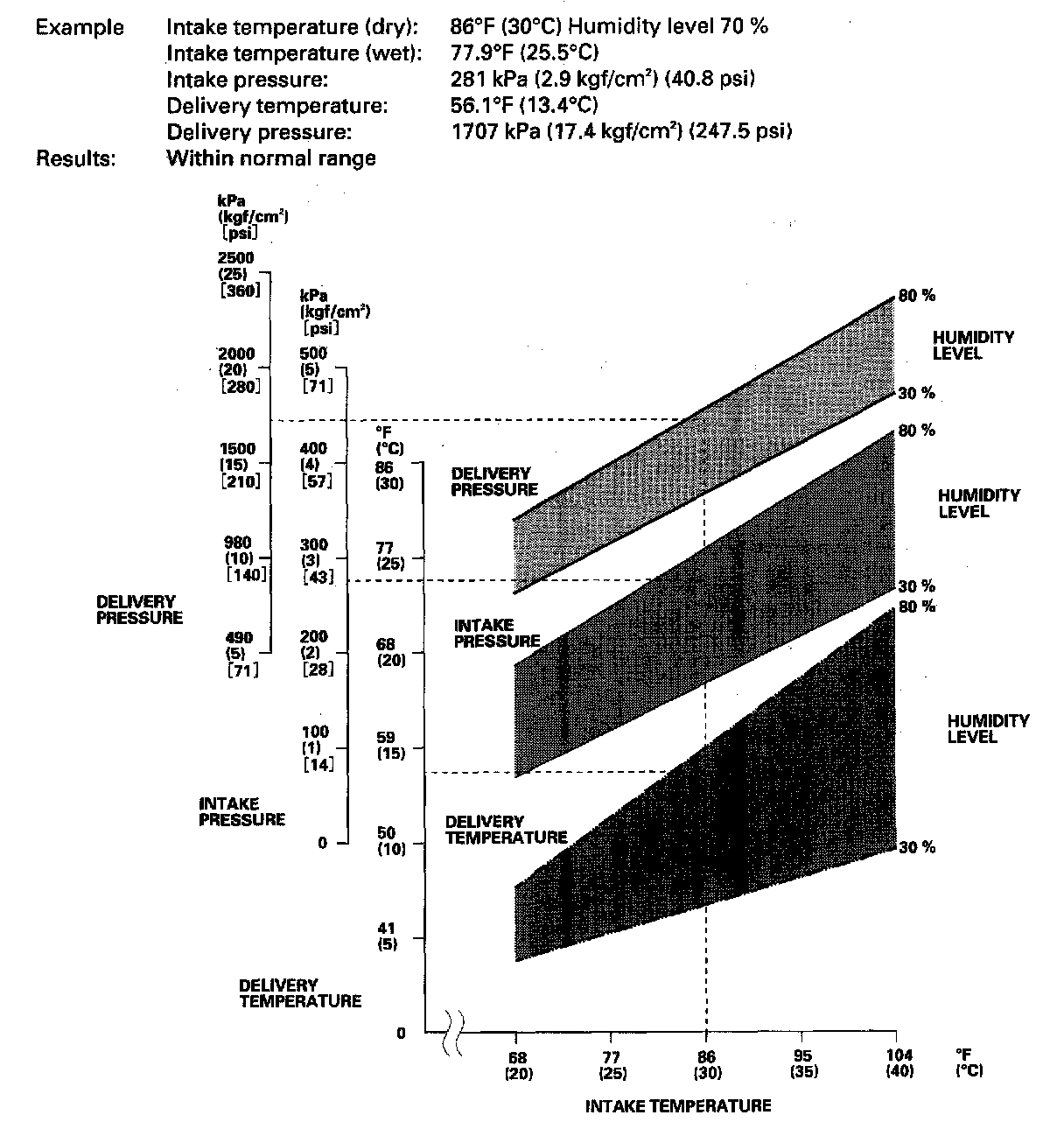 - Mark the intake temperature (ambient air temperature) along the bottom line.
