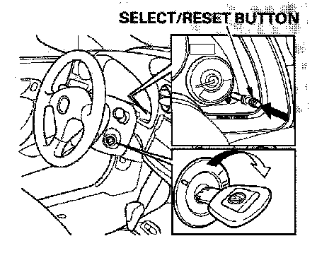 2. Press and hold the select and reset buttons in the instrument panel, then turn the ignition switch ON (II).