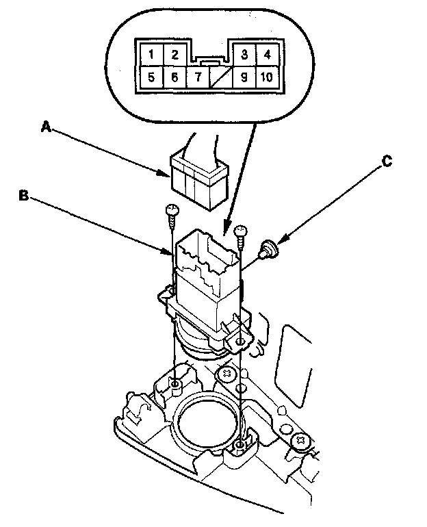 2. Disconnect the 10P connector (A) from the hazard warning switch (B).