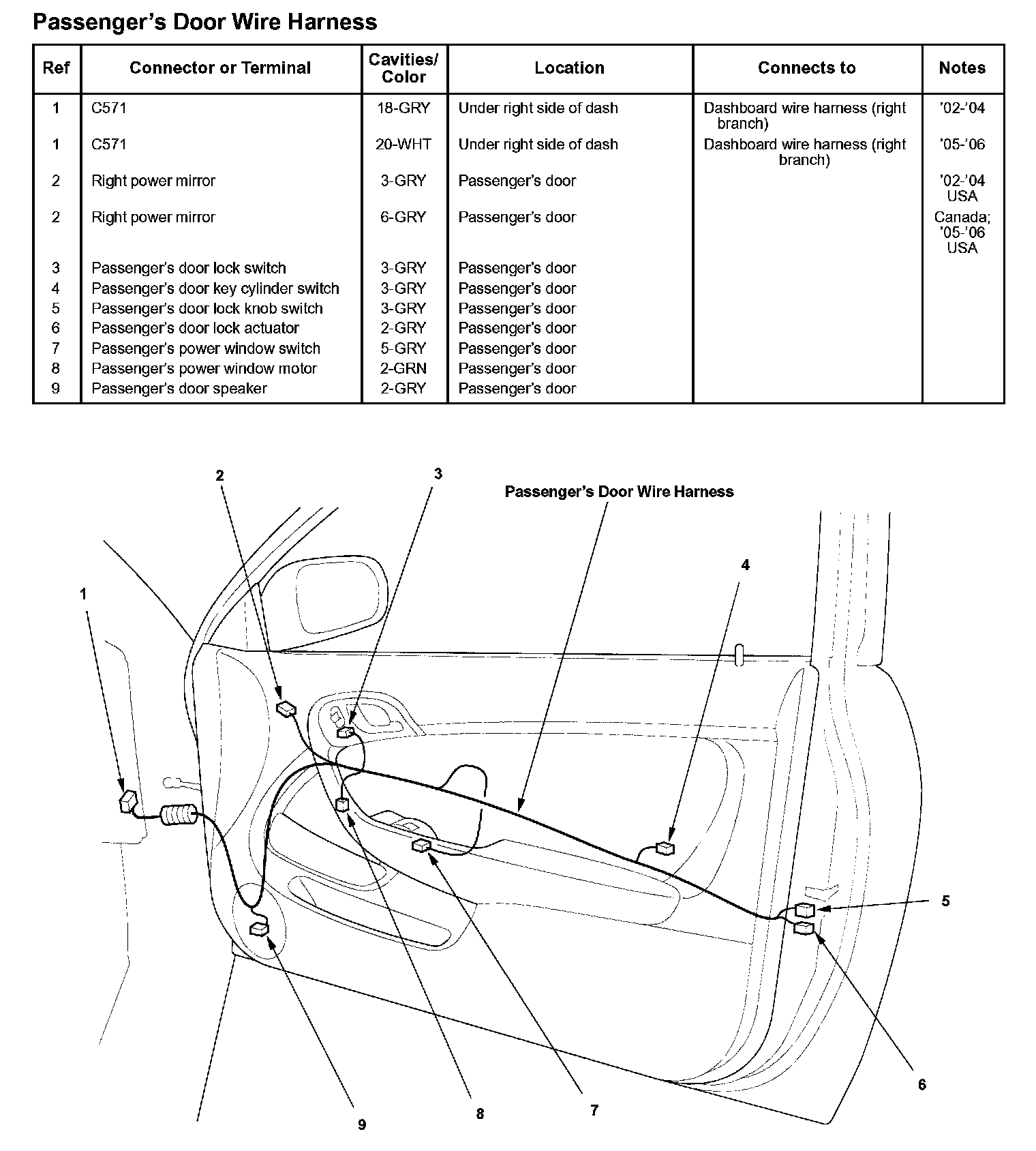 Passenger's Door Wire Harness: