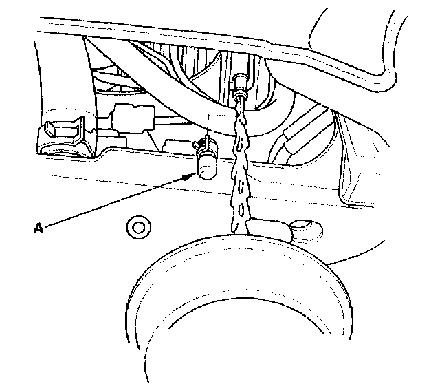 7. Fill the reserve tank to the MAX mark (A) with Honda All Season Antifreeze/Coolant Type 2 (P/N OL999-9001).