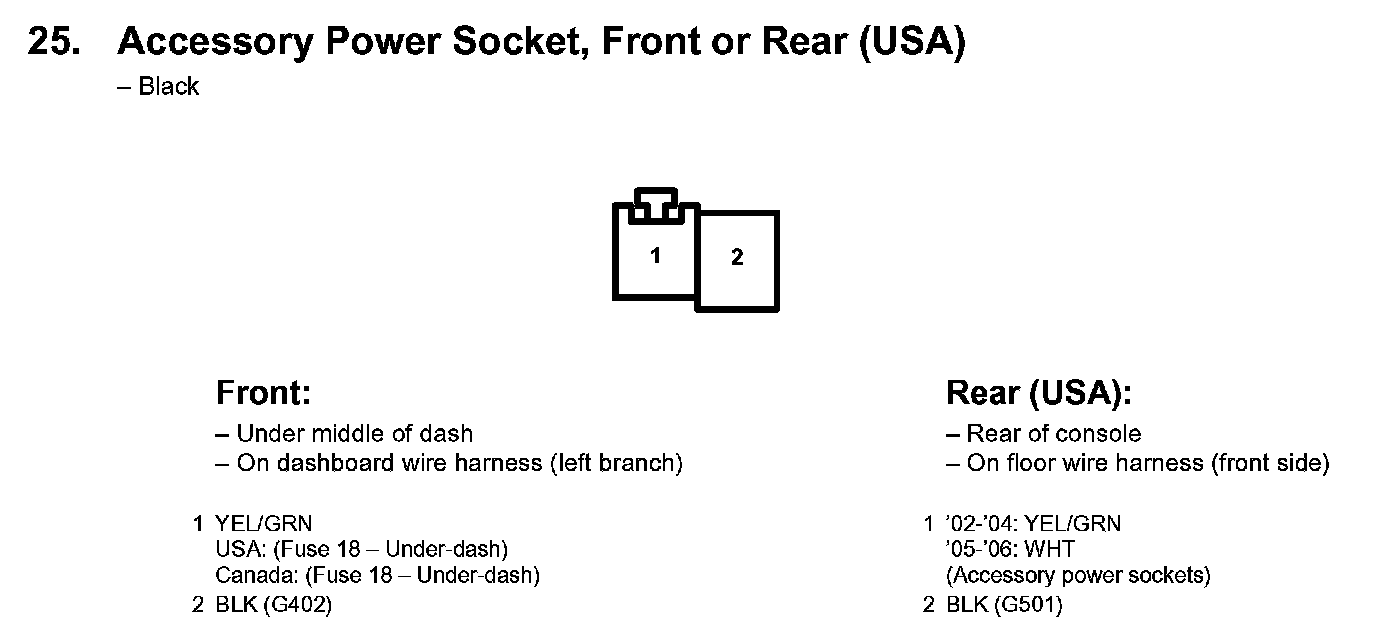25. Accessory Power Socket, Front or Rear (USA):