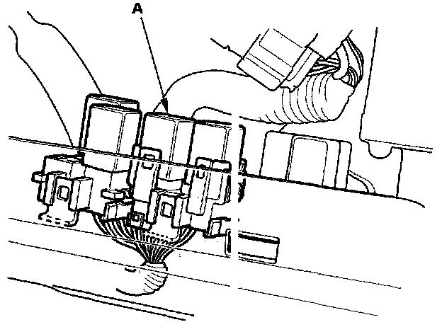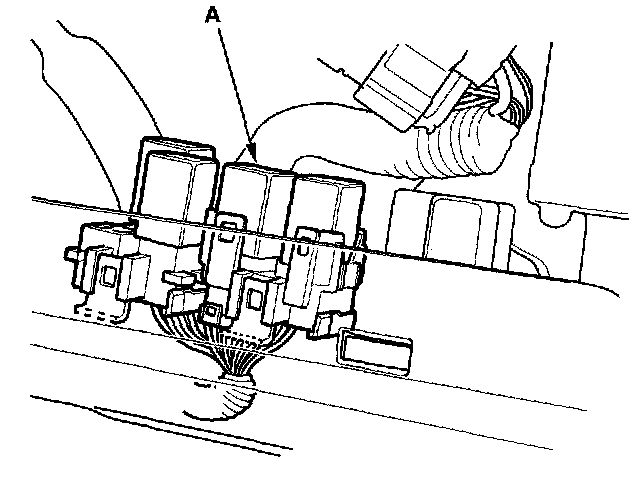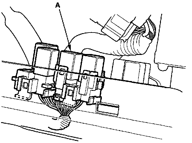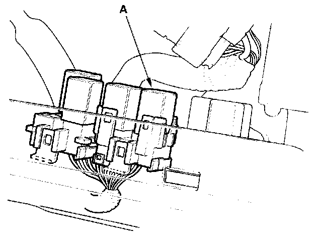 30. Remove the glove box. Remove PGM-FI main relay 1 (FI MAIN) (A).
